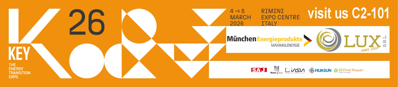 Vieni a trovarci a Rimini – Key Energy 2026, Padiglione C2, Stand 101 4-6 marzo 2026, e scopri le soluzioni Lux s.r.l. & München Energieprodukte GmbH per il futuro dell’energia.